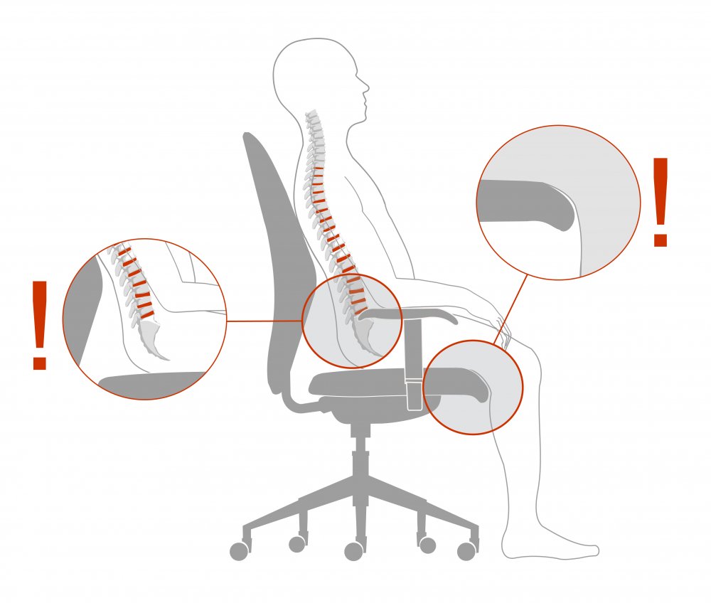 Nejčastější a nejspolehlivější cestou k bolestem v bedrech je dlouhodobé a nesprávné sezení na kancelářské židli. Z pohledu anatomie a evoluce není lidská páteř na dlouhodobé sezení připravená.