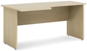 Rohový psací stůl levý, dřevěné nohy. Rozměry: 160 x 90, výška 76 cm. Navazující hrany: 60 cm. Dostupný desén: bříza, bílá, ořech Milano,…